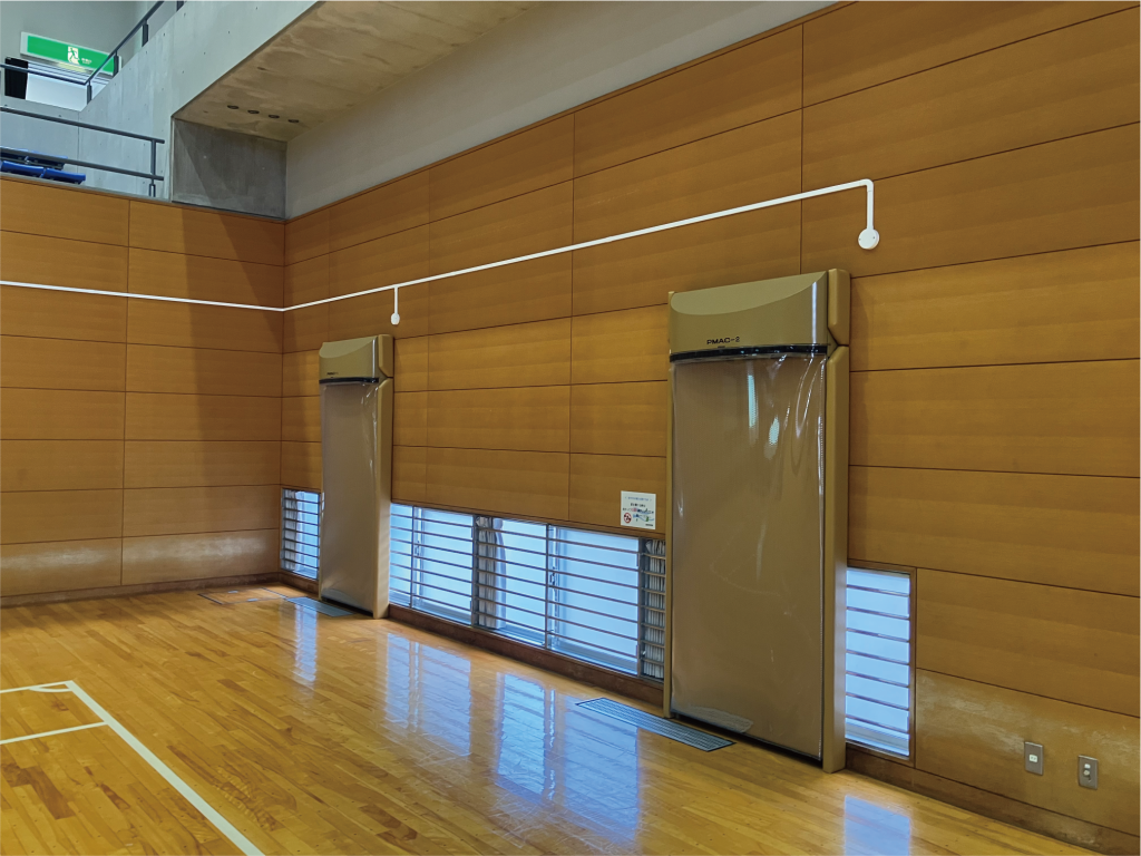暖房温風は”コアンダ効果”により体育館中央部まで到達し足元の底冷えが解消できており、ご参加いただきました多くの自治体、企業様に効率的な暖房モデルであると評価頂きました。
