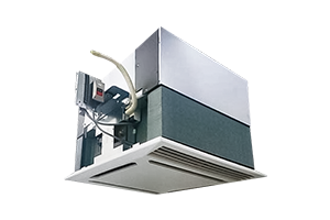 吸込みチャンバに紫外線灯を組み込んだ製品を開発。機器本体と組み合わせることで還気(RA)を清浄化し、空調された給気(SA)で室内の希釈を行う効果が見込めます。室内用の空気清浄機に比べて処理風量を確保可能で、空調を行いながら1度により多くの空気を清浄化できるため、感染症対策に貢献します。